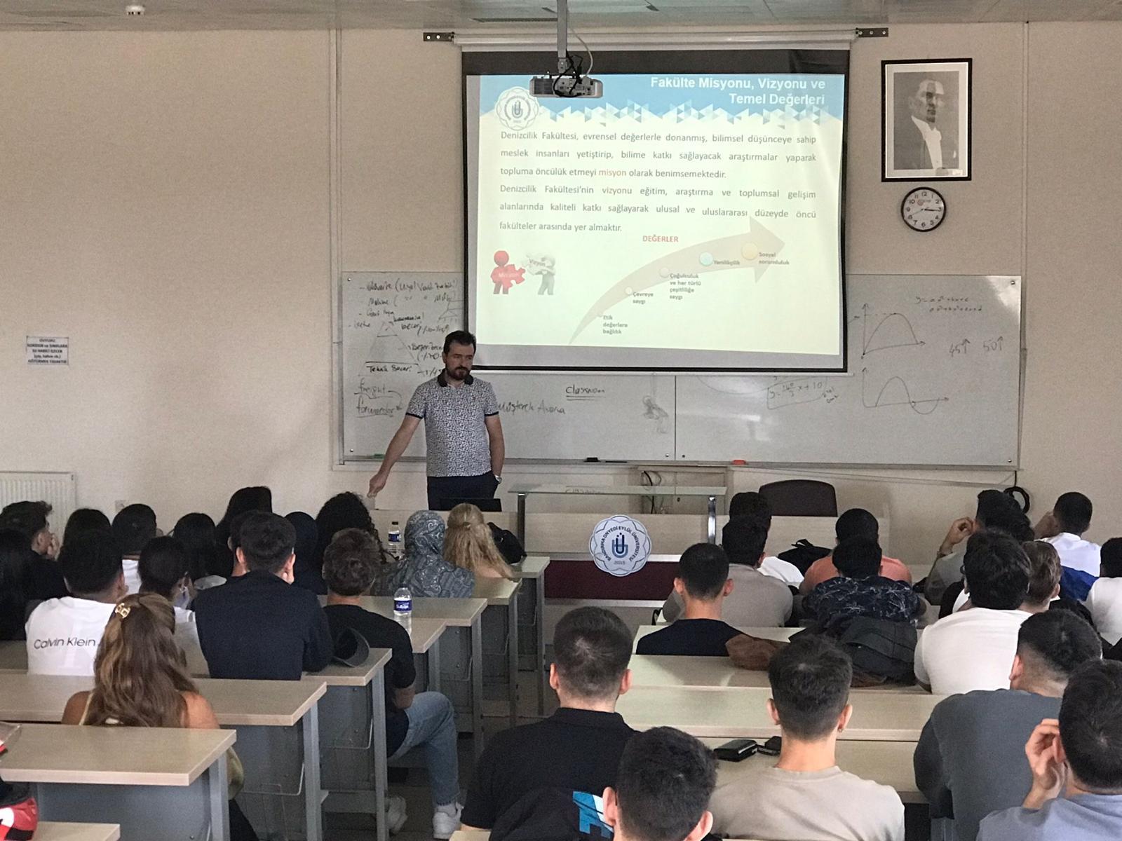Programın açılış konuşmasını Denizcilik Fakültesi Dekanı Prof. Dr. Celil AYDIN yaptı. Ardından, Dekan Yardımcısı Doç. Dr. Ramazan ŞENER öğrencilere akademik süreçlerde karşılaşacakları fırsatlar ve imkanlar hakkında kapsamlı bilgiler verdi. Çift Anadal (ÇAP), Yandal, staj ve Erasmus değişim programlarının önemini vurgularken, ayrıca öğrencilerin üniversiteye uyumlarını kolaylaştıracak birçok konuda sunum yaptı.