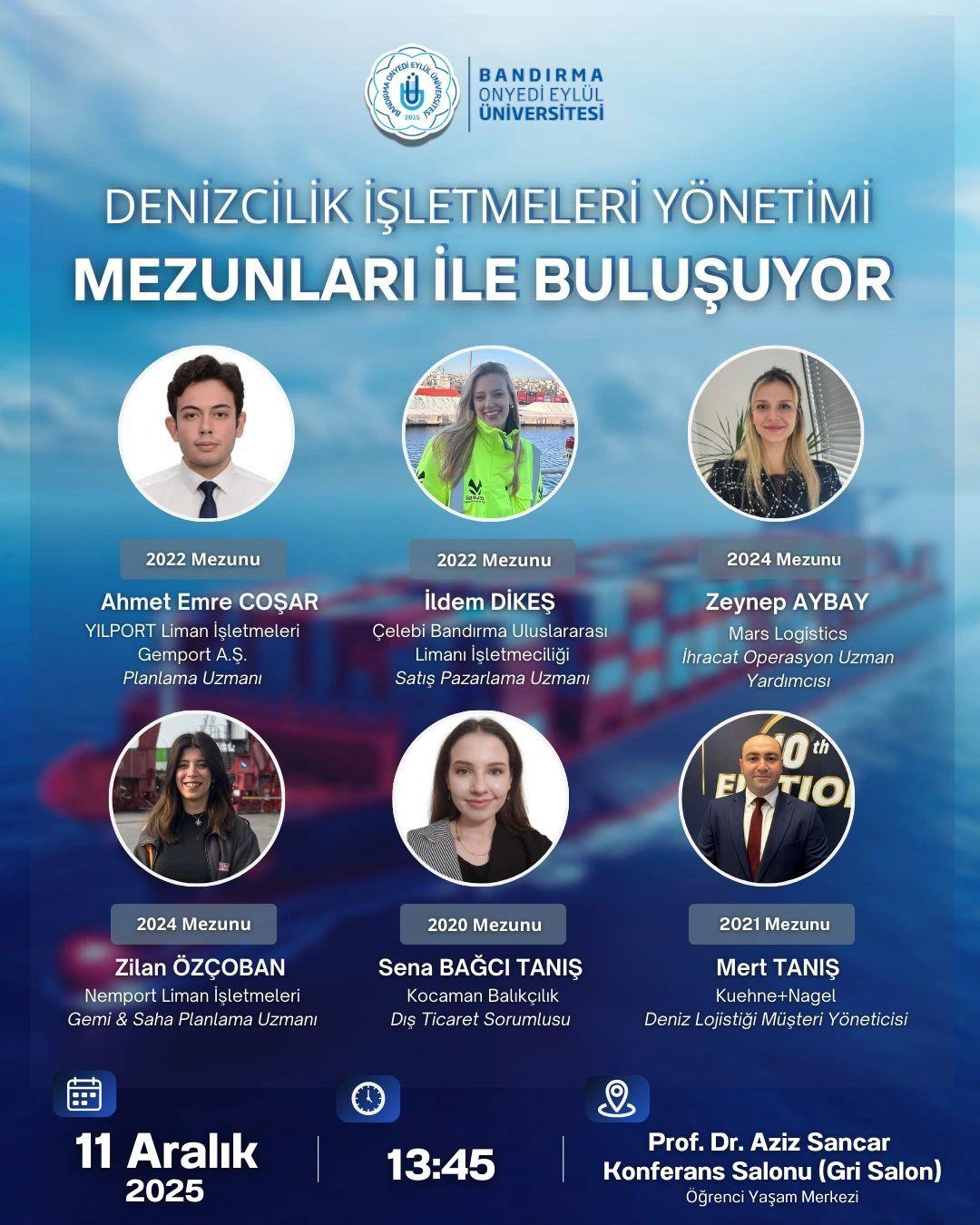 Denizcilik İşletmeleri Yönetimi programı mezunlarımızı konuk edeceğimiz bu ilk buluşma için oldukça heyecanlıyız. Tüm öğrencilerimizi ve imkanı olan tüm paydaşlarımızı bekleriz.