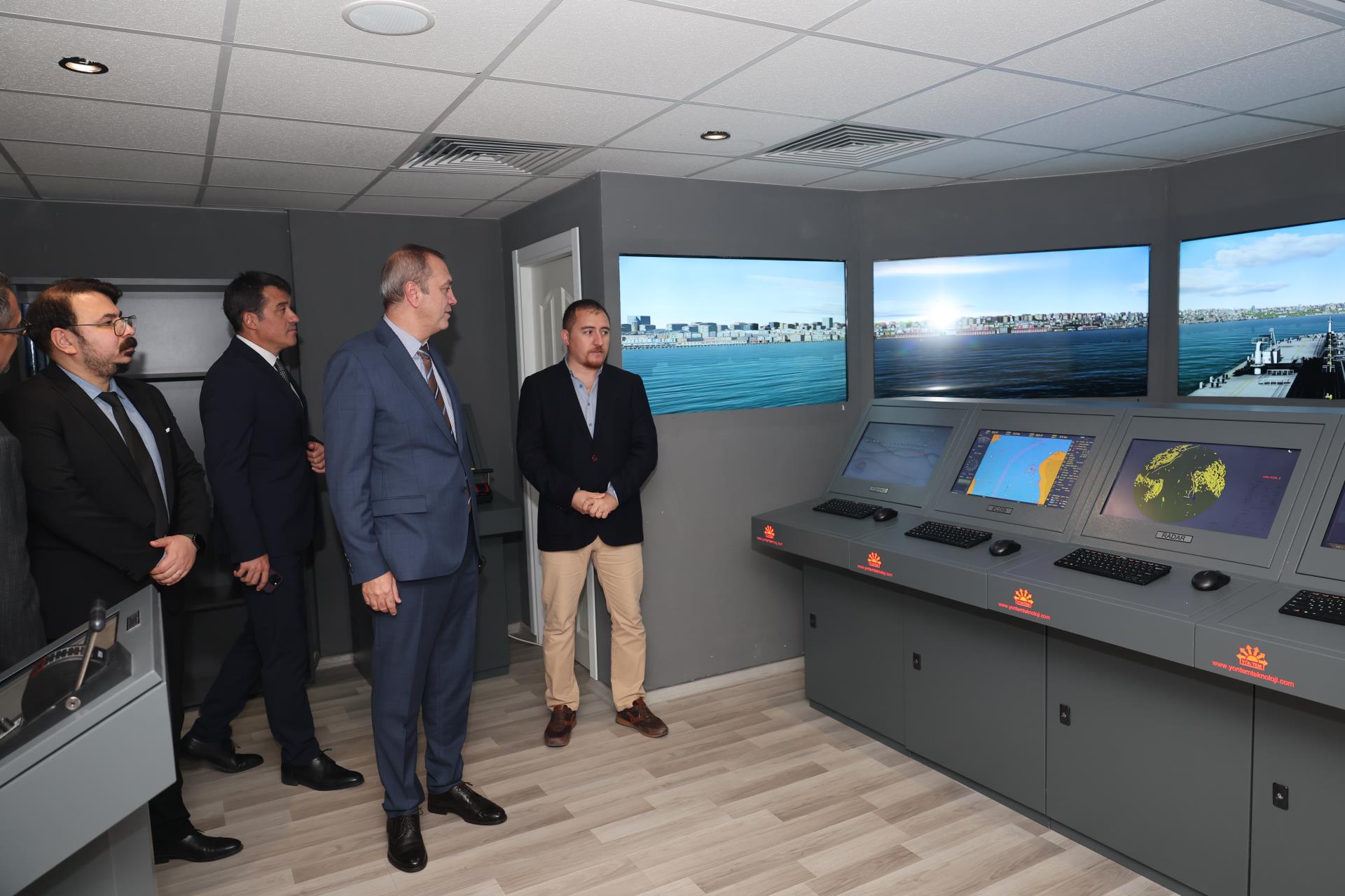 Programın ikinci bölümünde, konuklar Fakültemizin modern eğitim altyapısını yakından incelediler. Denizcilik Fakültesi bünyesinde yer alan simülatör merkezleri, laboratuvarlar ve uygulama sınıfları gezilerek yapılan çalışmalar hakkında bilgi verildi. Ayrıca, İMEAK Deniz Ticaret Odası tarafından üniversitemize kazandırılan IMEAK Denizcilik Uygulama Eğitim Merkezi de ziyaret edildi.