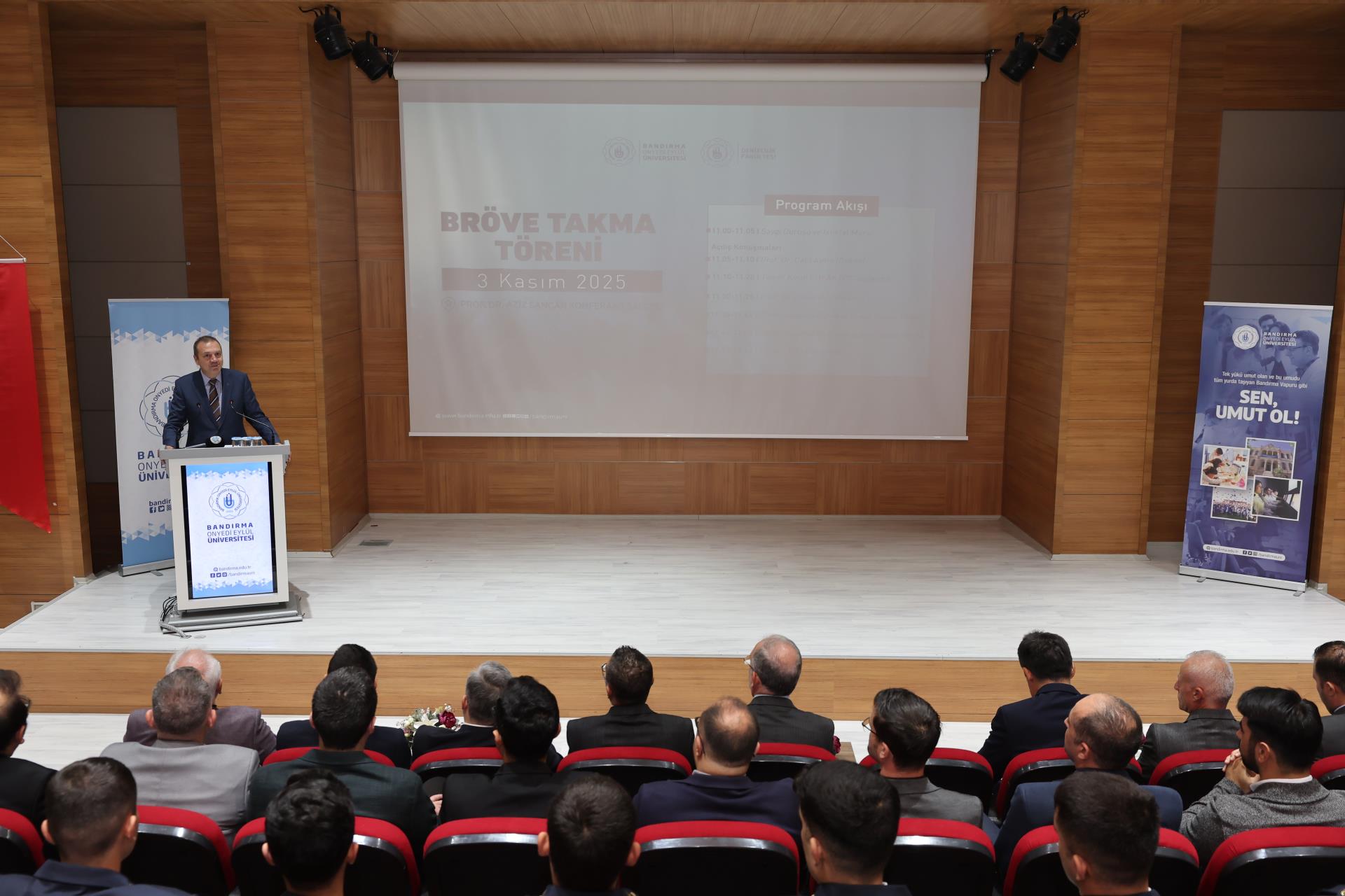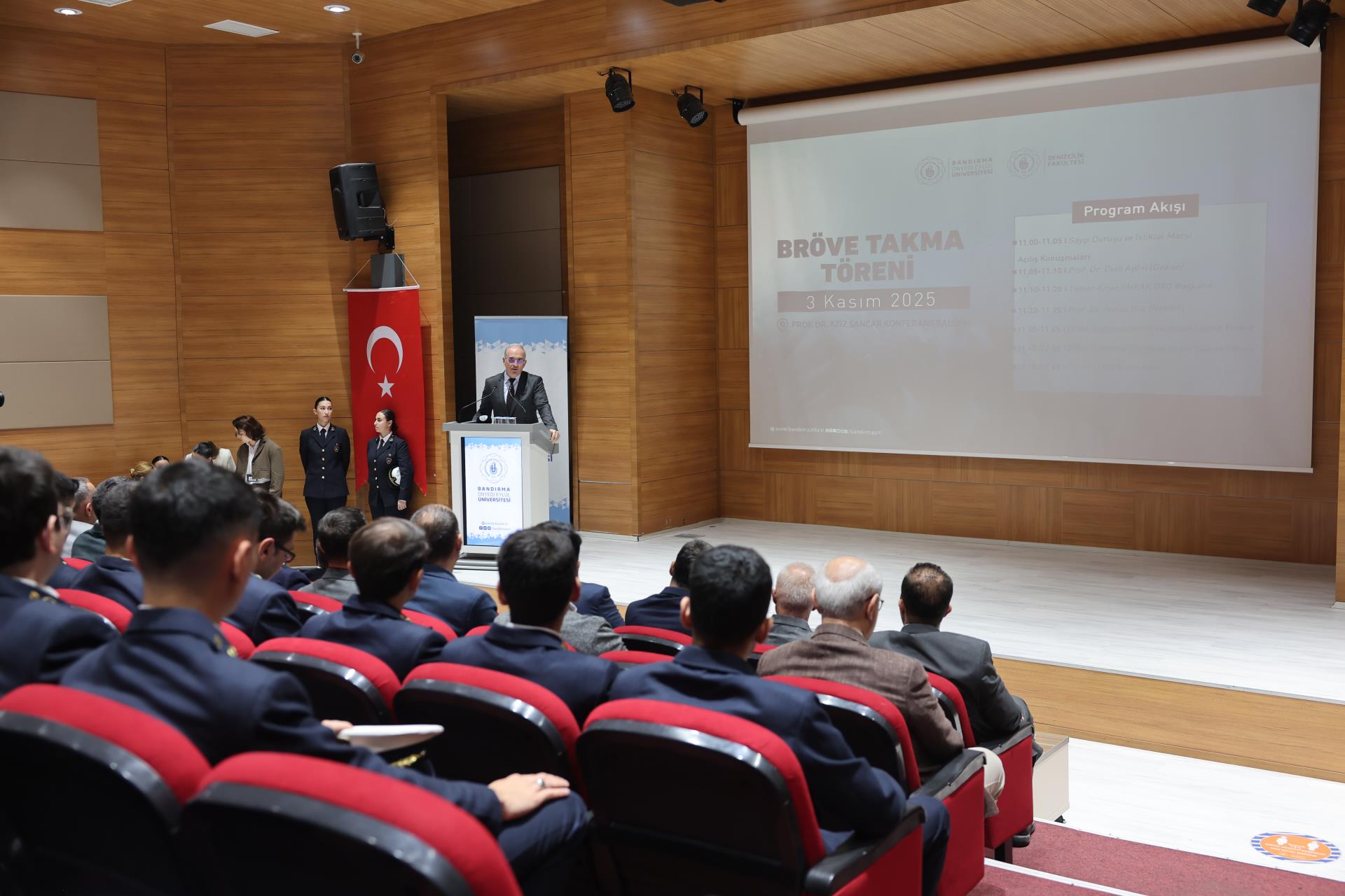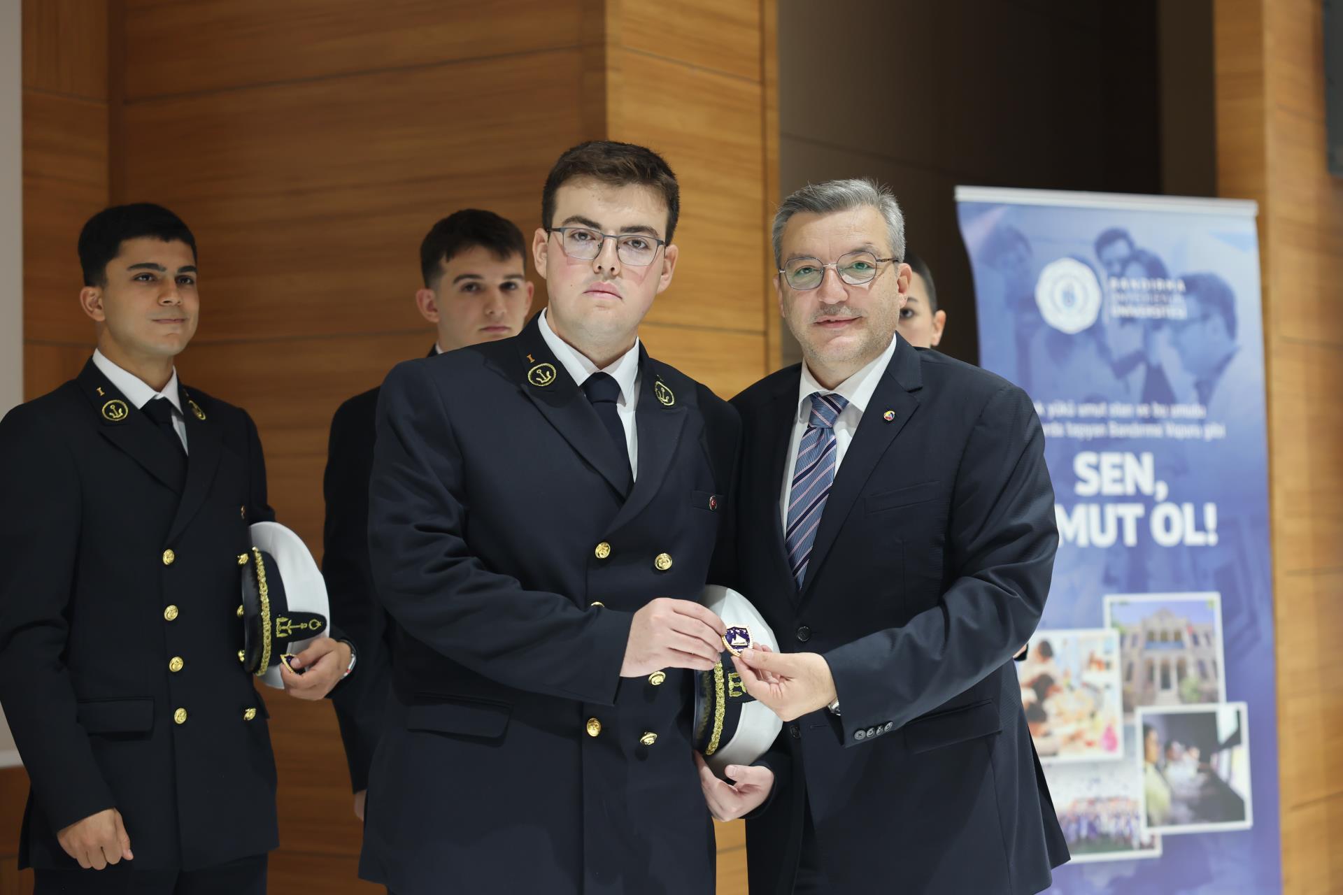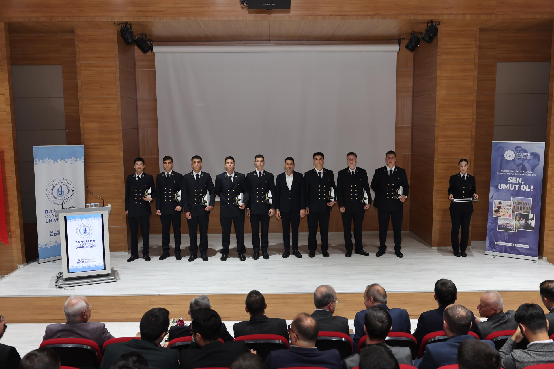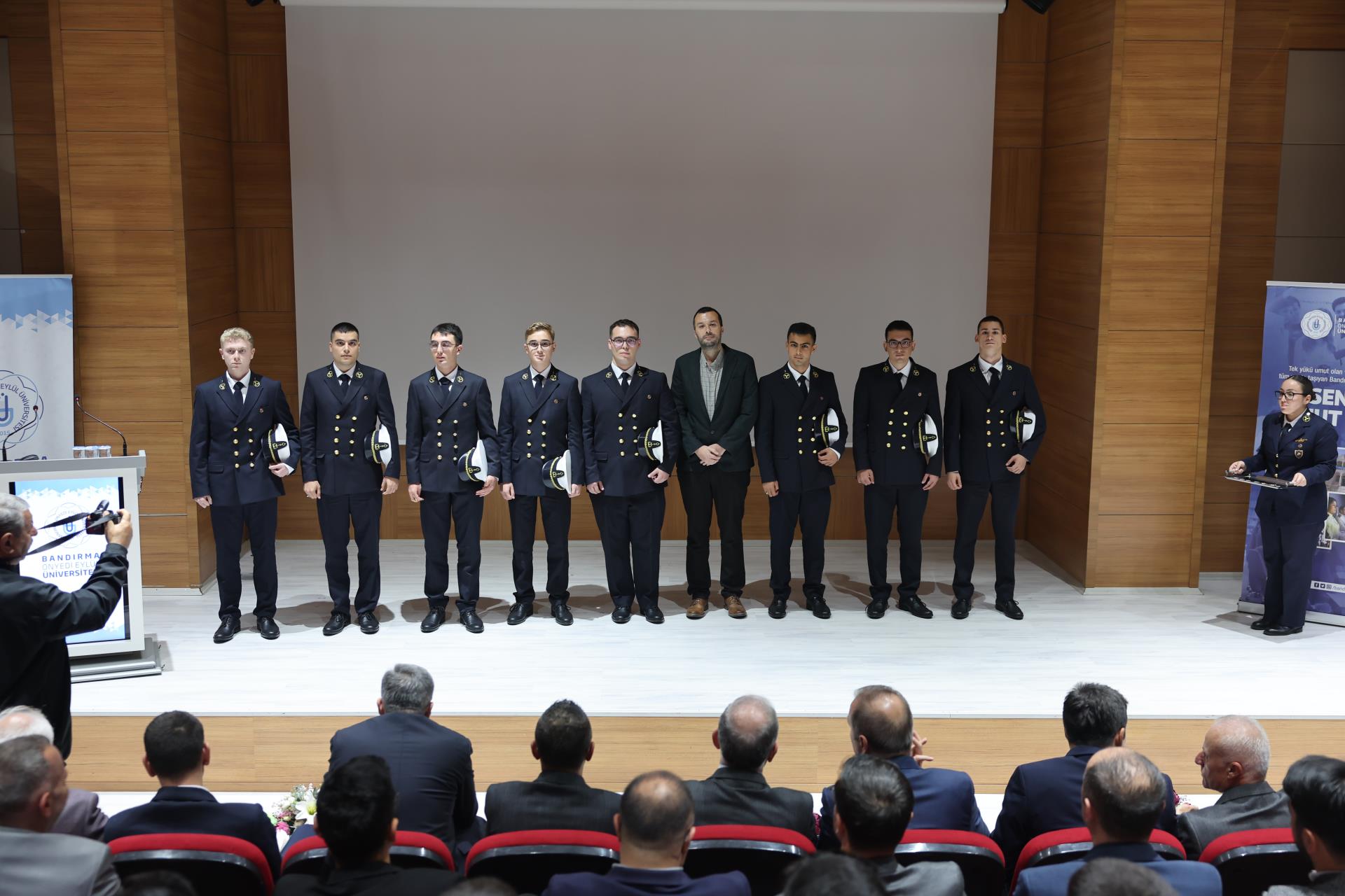 Bandırma Onyedi Eylül Üniversitesi Denizcilik Fakültesi, Deniz Ulaştırma İşletme Mühendisliği ve Gemi Makineleri İşletme Mühendisliği bölümlerinde öğrenim gören 1. sınıf öğrencilerinin “Üniforma Giyme ve Bröve Takma Töreni” büyük bir coşku ve gururla gerçekleştirildi. Denizcilik mesleğine ilk adımlarını atan öğrenciler, bu özel günde üniformalarını giyerek mesleki kimliklerinin sembolü olan brövelerini taktı.