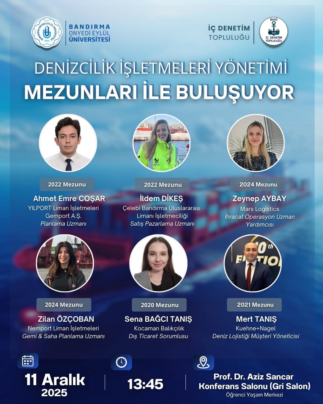 iç Denetim Topluluğun düzenlemiş olduğu 'Denizcilik İşletmeleri Yönetimi' mezunları ile buluşuyor etkinliğine davetlisiniz -11 Aralık Perşembe Günü 2025 Saat: 13:45