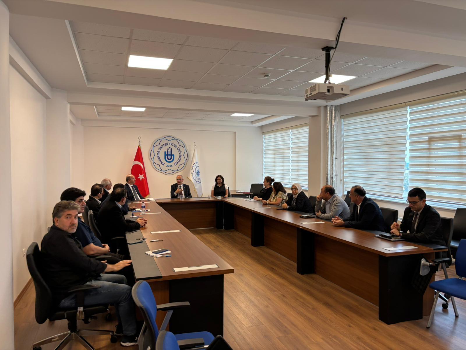 A Faculty Board Meeting was held in the Dean's Meeting Hall on October 6, 2025, at 4:00 PM, with the participation of University Rector Prof. Dr. İsmail BOZ, Vice Rector Prof. Dr. Alpaslan SEREL, Vice Rector Prof. Dr. Mehmet Emin ERÇAKAR, Faculty Dean Prof. Serap PALAZ ÇAKIR, and members of the Faculty Board.