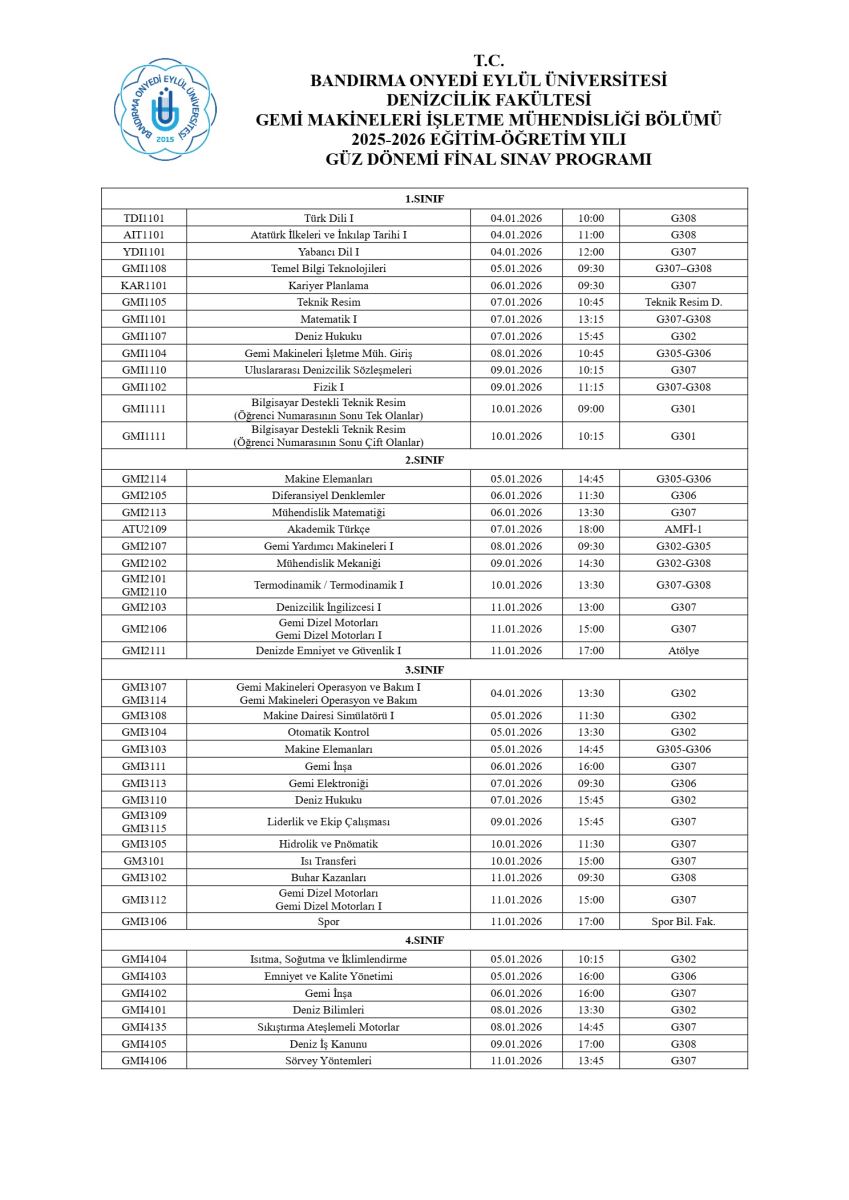GEMİ MAKİNELERİ İŞLETME MÜHENDİSLİĞİ BÖLÜMÜ
